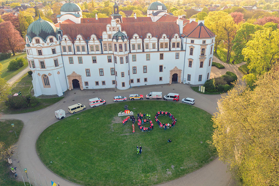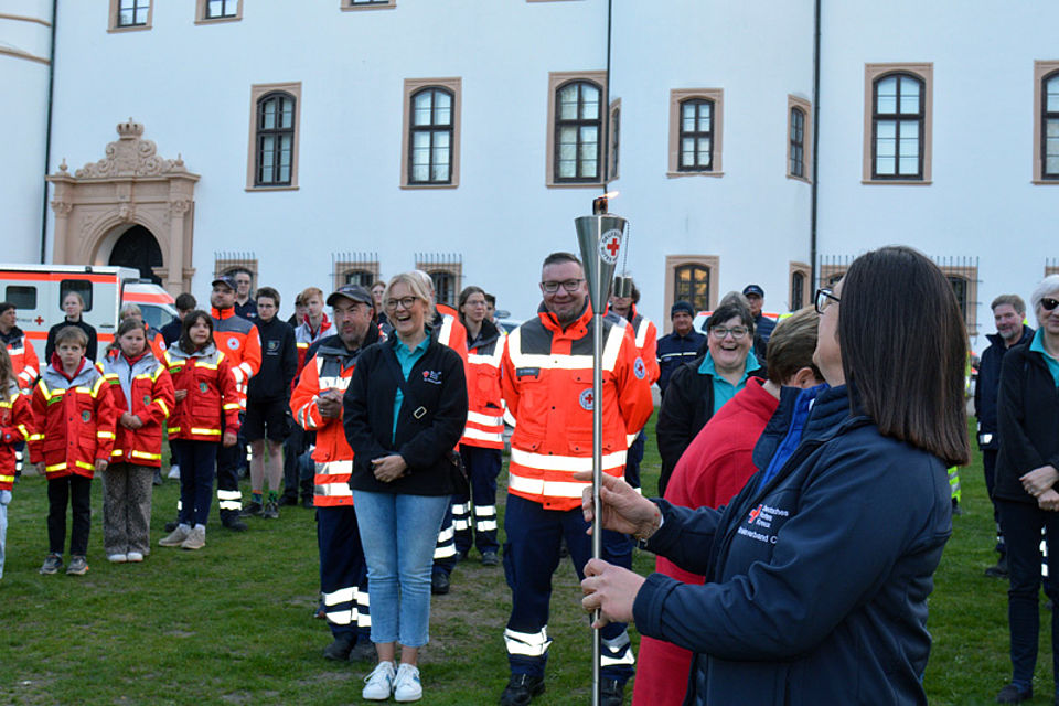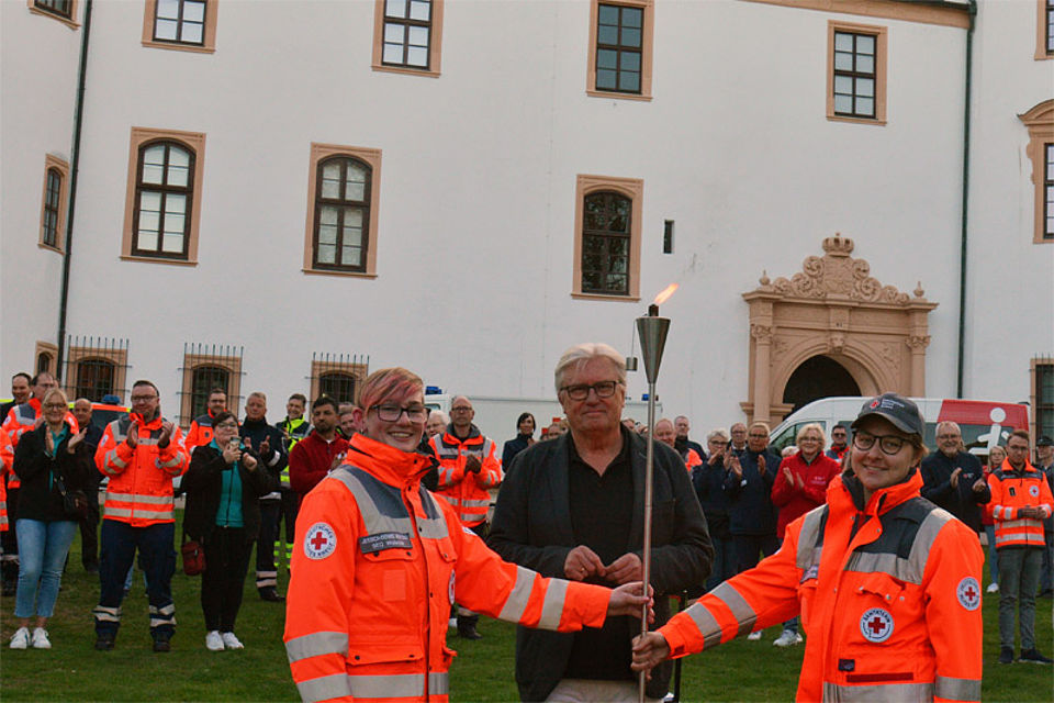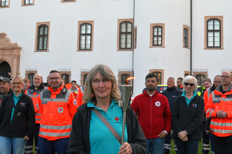 Unter dem Motto „Tradition trifft Zukunft“ feiert das Deutsche Rote Kreuz in Celle in diesem Jahr sein 160‑jähriges Jubiläum. Den feierlichen Auftakt bildete die Fackelübergabe vor der historischen Kulisse des Celler Schlosses. Vertreterinnen und Vertreter aus Ehren‑ und Hauptamt kamen zusammen, um diesen besonderen Moment gemeinsam zu erleben – vom Fahrdienst über Kitas, Jugendrotkreuz und Sozialdienst bis hin zu Ortsvereinen, Bereitschaften und Rettungsdienst.