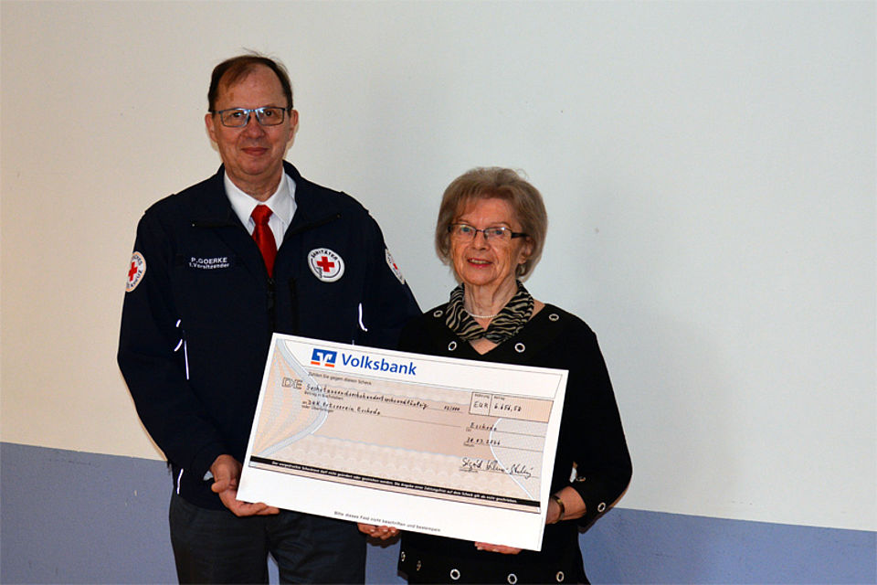 Doch die Hoch-Zeit der Vereinigung, die sich unter anderem für eine gesundheitsbewusste Lebensweise einsetzte sowie über die Stärkung der körpereigenen Abwehrkräfte aufklärte, ist lange vorbei. Zum Ende des Jahres 2025 wurde sie aufgelöst. „Wir hatten in der Satzung verankert, dass übrige Gelder dem Roten Kreuz in Eschede zugutekommen sollen“, erläutert Frau Stockert. Wichtig war den damaligen Initiatoren, eine Einrichtung des Gesundheitswesens als begünstigt zu verankern. „Das Onkologische Forum und auch das Hospiz gab es ja noch nicht“, blickt Gudrun Stockert zurück. Und zum DRK-Ortsverein Eschede hatte die heute 81-Jährige einen Bezug: „Ich war 13 Jahre lang Kassenwartin“, erzählt sie. Somit befindet sie sich für die Scheckübergabe an alter Wirkungsstätte, den Räumlichkeiten an der Uelzener Straße. Rund 6.500 Euro wies das Sparbuch des „Vereins für Homöopathie“ bei Auflösung auf, und dieser Betrag kommt nun dem lokalen DRK-Ortsverein zugute.