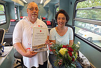 Celle, 22. August 2016 – Sichtlich überrascht war Dörthe Skoeries, als sie das Blutspendemobil anlässlich der großen Feier zum 150-jährigen Bestehen des DRK-Kreisverbandes Celle e. V. betrat, um sich…